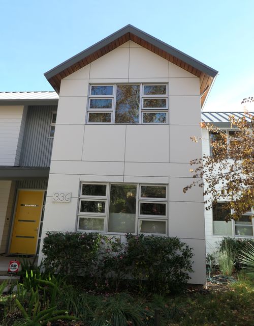 Nordic Façade Panels are manufactured in Europe, with properties meeting or exceeding EN 12467 test standards. This is the most stringent performance standard in the world for high density, fiber-reinforced cement panels. The panels are produced using a unique steam curing process, which increases the high strength and stability of the board, while allowing the board to maintain flexibility. Nordic Façade Panels have a Class 5A rating, which is the highest ranking available for bending strength in fiber cement panels. The panels are highly stable, fully cured, moisture balanced, and non-combustible. A wide array of panel types are available with hydrophobic, UV resistant, and anti-graffiti properties.